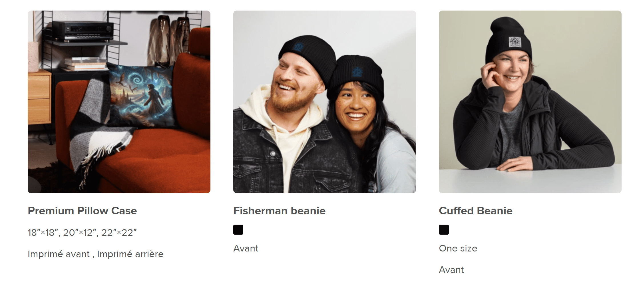 Coussin MagicWorld : 25,00 € Bonnet MagicWorld : 15,00 €